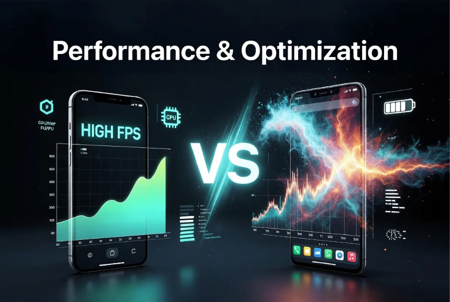 Performance & Optimization depends on the speed, stability, and resource efficiency of a mobile app. iOS is generally built with a combination of specific hardware and software, so apps run fast and smoothly, and optimization is relatively easy. On the other hand, Android is a bit more challenging for developers to optimize performance because it runs on a variety of devices and hardware configurations. However, with proper coding, memory management, and resource optimization, it is possible to ensure high-quality performance on both platforms.